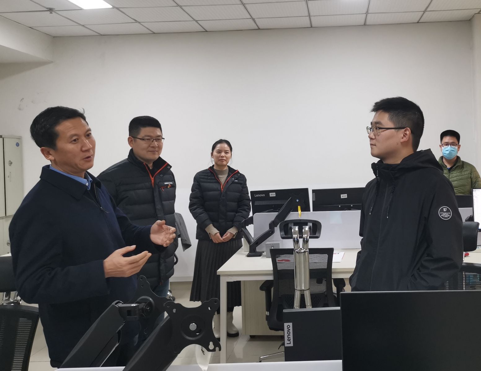 今年公司多個重點項目面臨時間緊、要求高、難度大等困難,技術中心面臨不小的考驗。在主樓4樓辦公區,徐猛依次走進一個個辦公室,和大家親切交談,仔細詢問了大家近期的工作情況,詳細了解項目進展、項目難點等。對大家愛崗敬業、加班加點的奉獻精神給予了贊揚和肯定,并鼓勵青年技術人員要解放思想,勤學苦練,立足崗位,勇于奉獻,在實踐中學習本領,鍛煉提高自己。